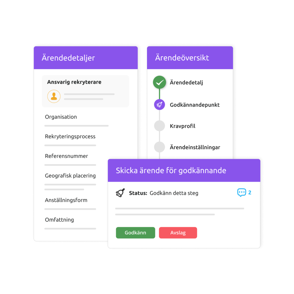 I Talent Hire börjar du varje rekrytering med att skapa ett ärende. Där du fyller i beslut så som geografisk placering och anställningsform. Du väljer också vilka kollegor som du ska samarbeta med kring rekryteringen så att ni smidigt kommer vidare i processen.